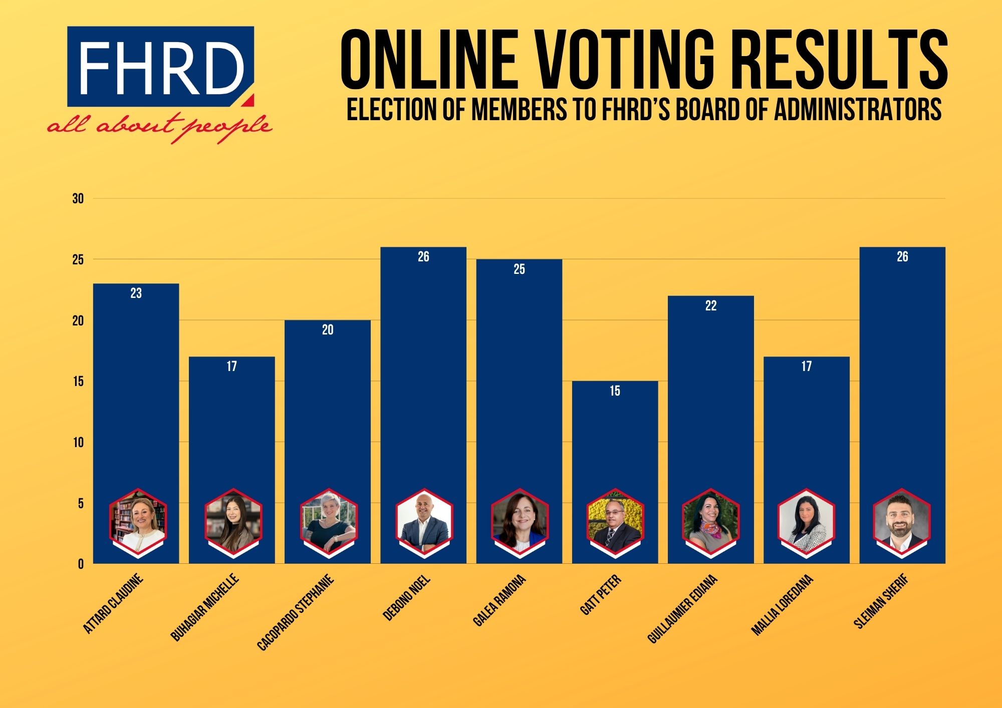 Based on the results, the following six (6) candidates obtained the highest number of votes and are therefore elected to the FHRD Board of Administrators for the term 2026–2029: